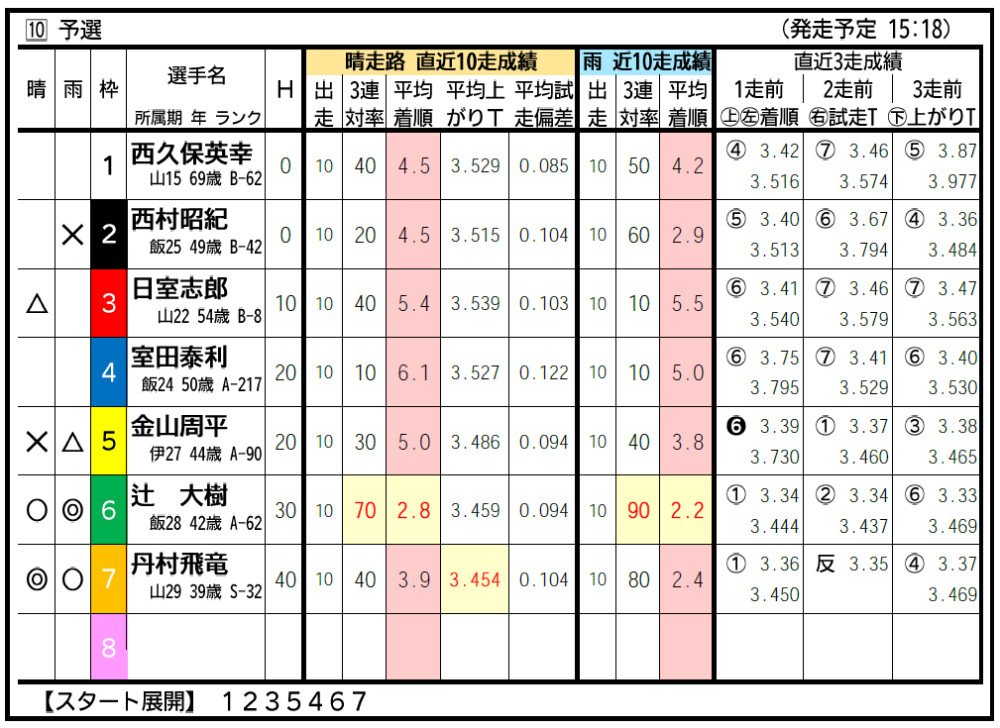 丹村から狙ったが、前節最終日の動きは辻も良好。位置的には日室絡みも。