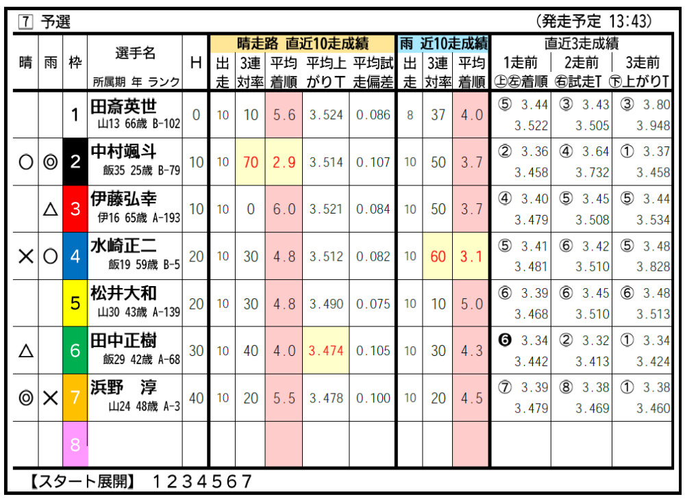 ◆7R出走表