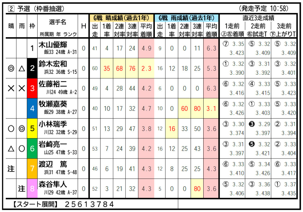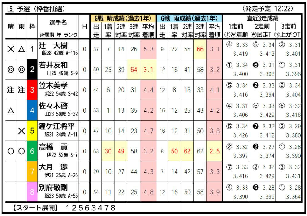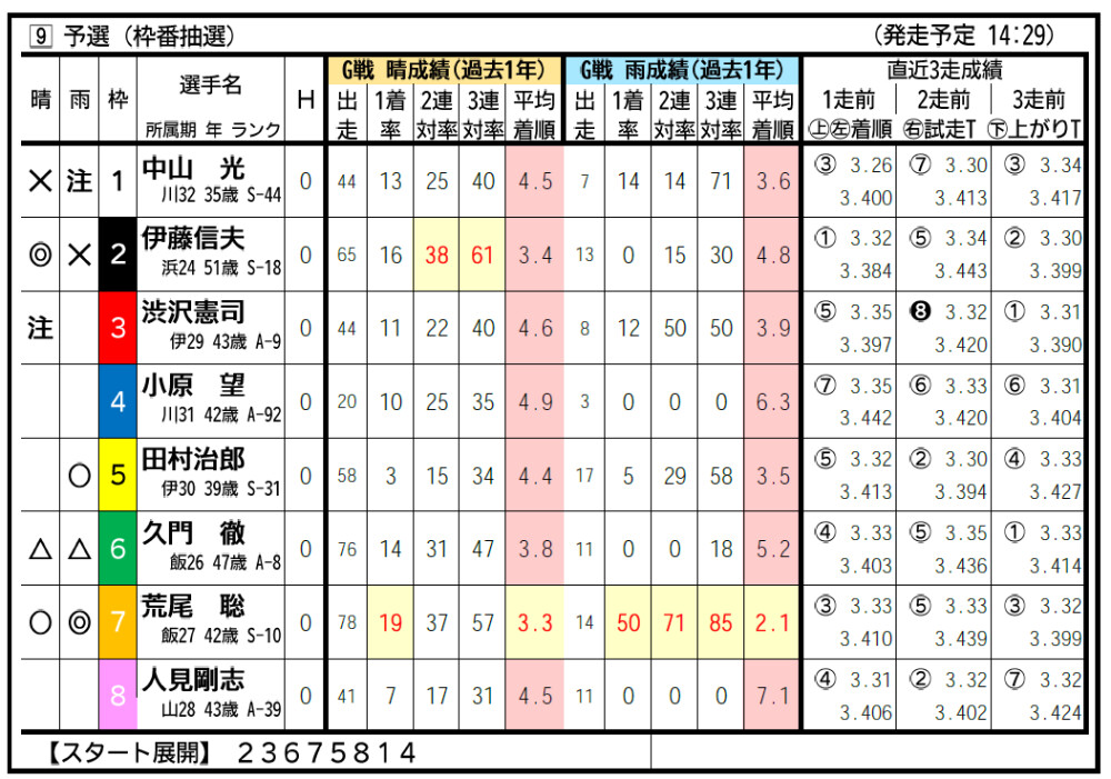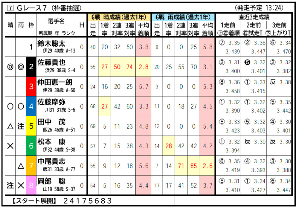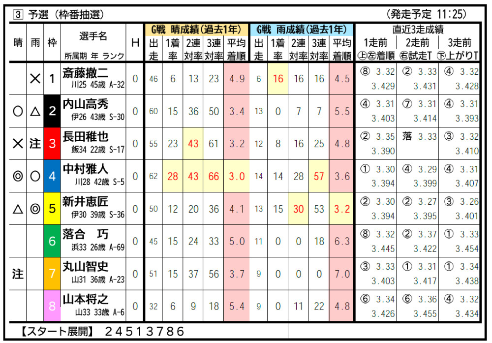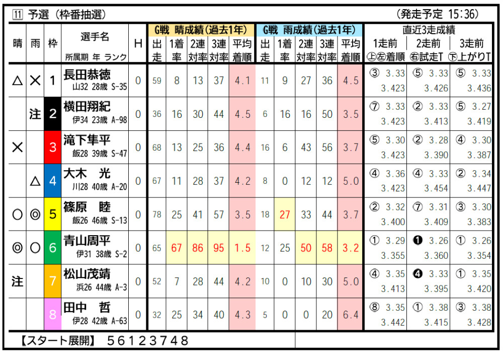 内中枠勢に目立つS巧者不在。篠原と青山が好S決めて首位争い。軸は青山。