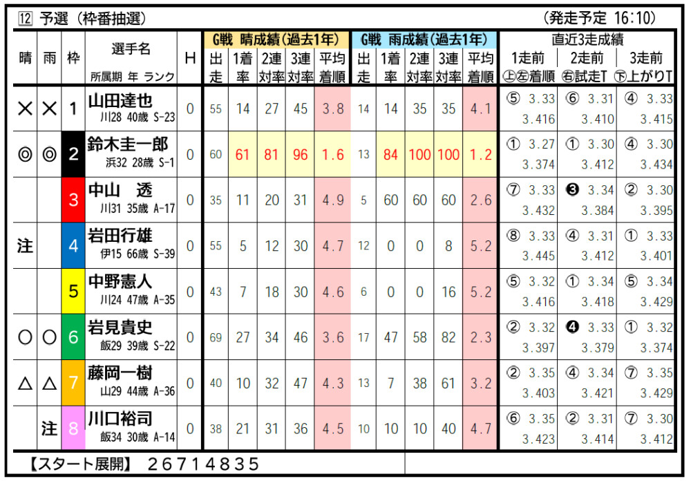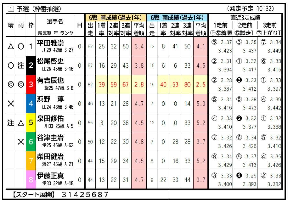 【浜松オート・SG日本選手権】11月1日 2日目 1~12R出走表・予想