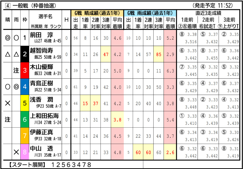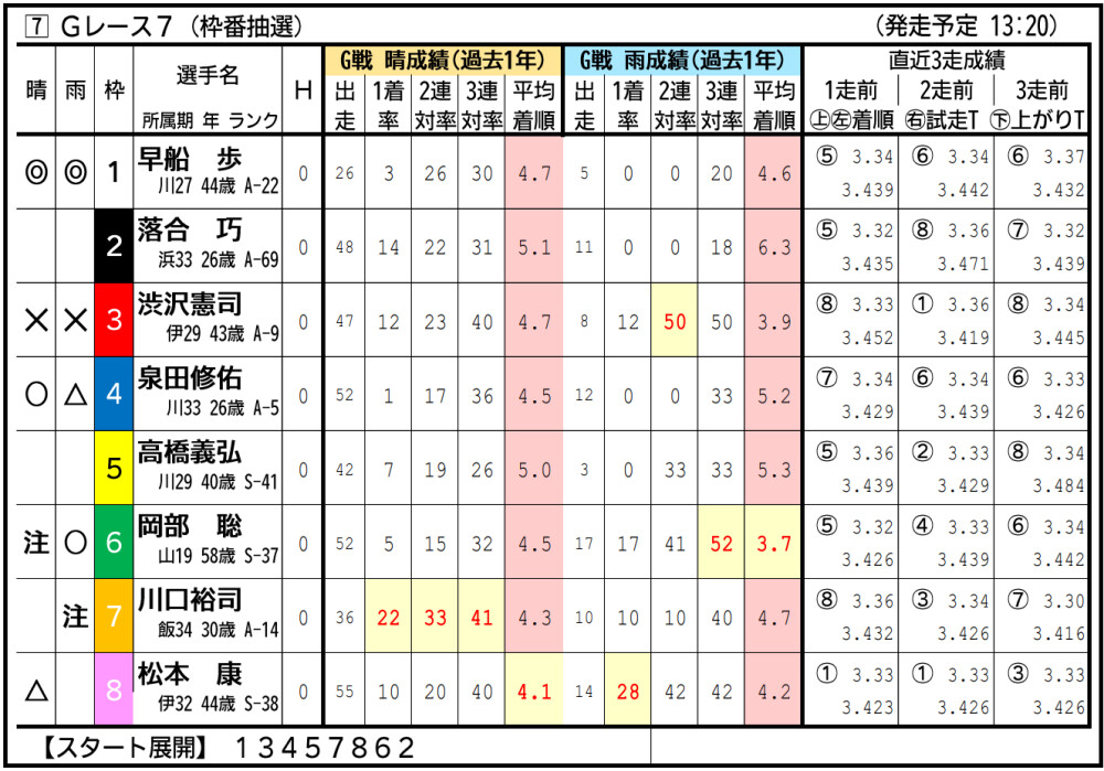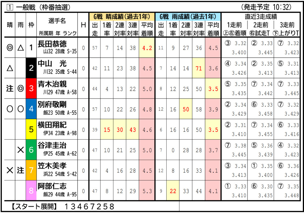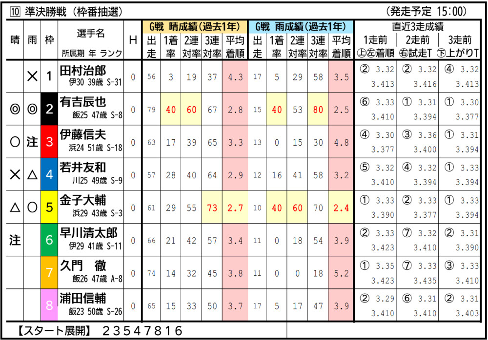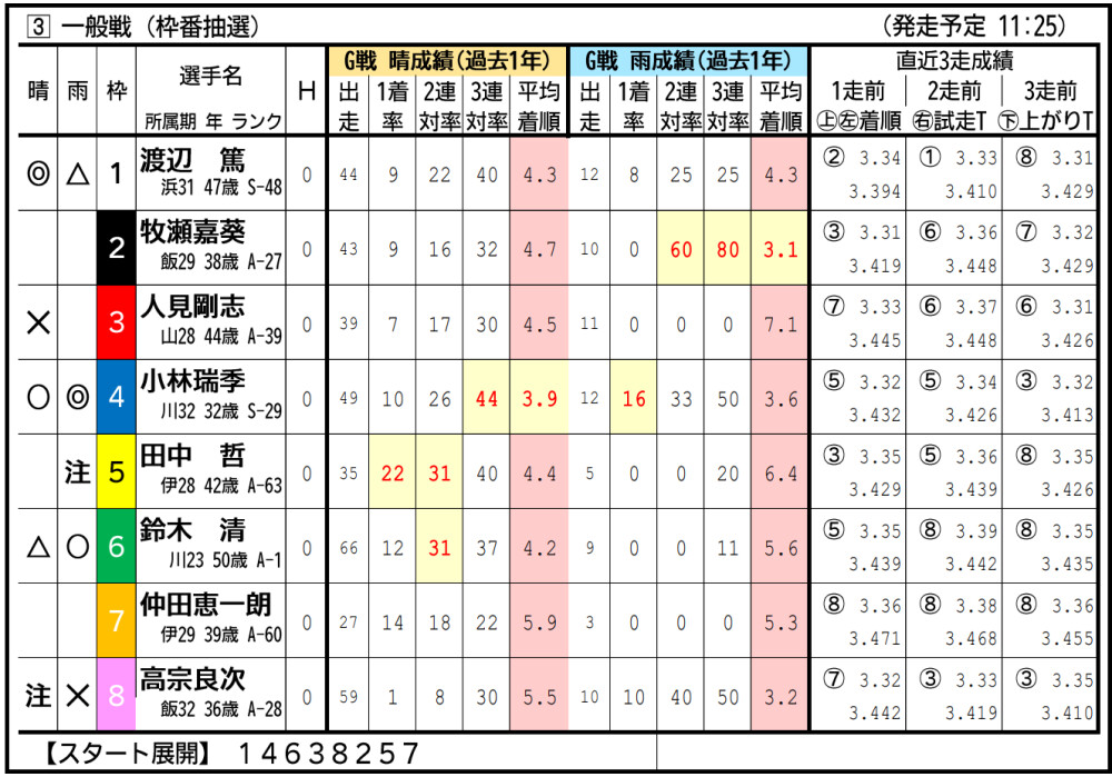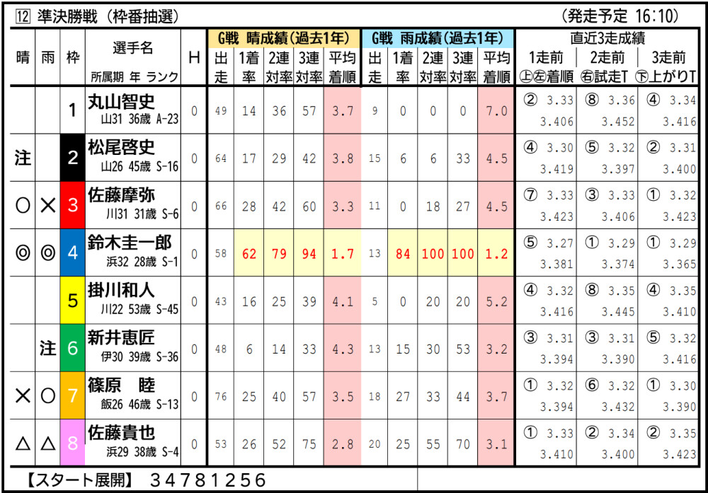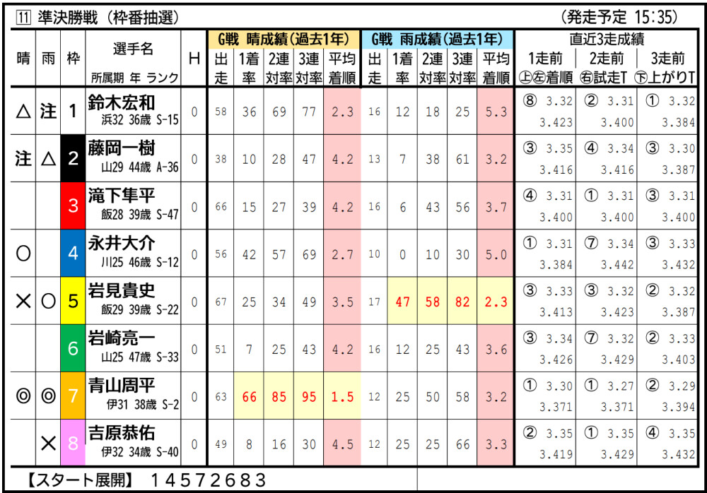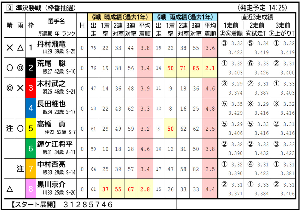 渡辺は準決入りこそ逃したが、気配は悪くなさそう。中枠から小林の攻めに要警戒。