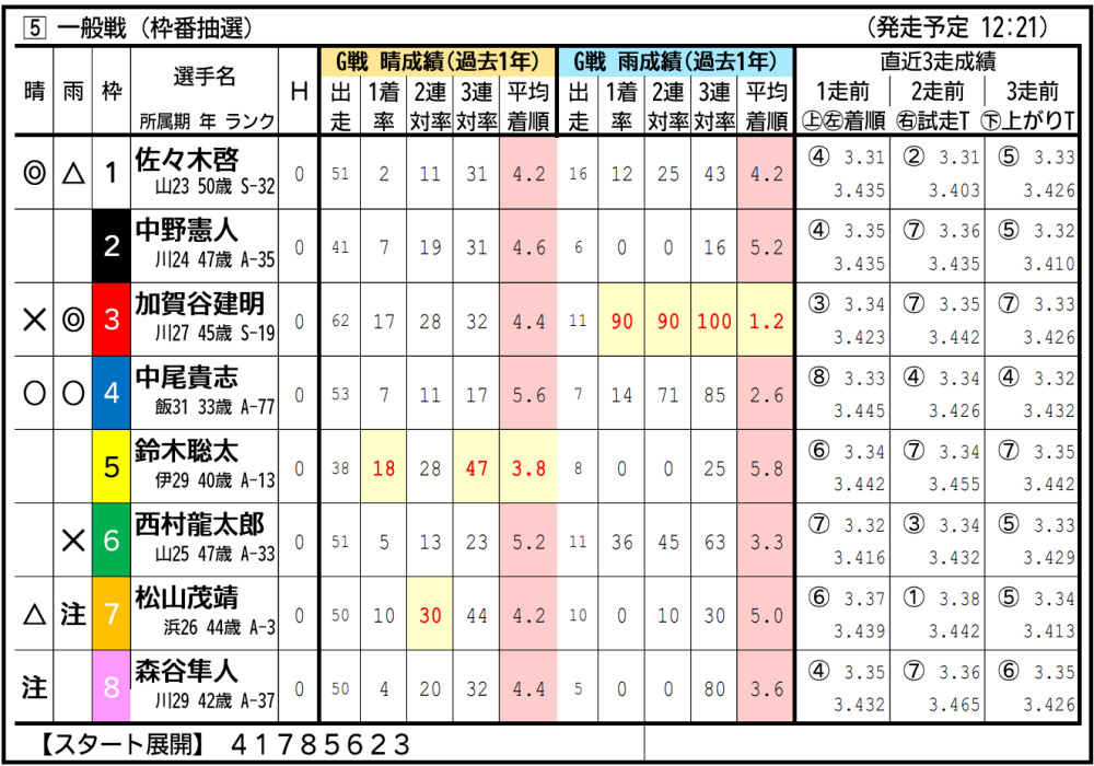 佐々木はSで中団以内につけられれば追い上げ可能。中尾が粘る。加賀谷絡み注意。