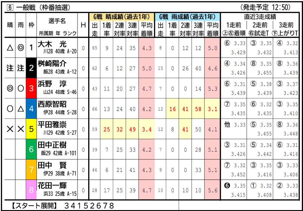 ◆12R出走表