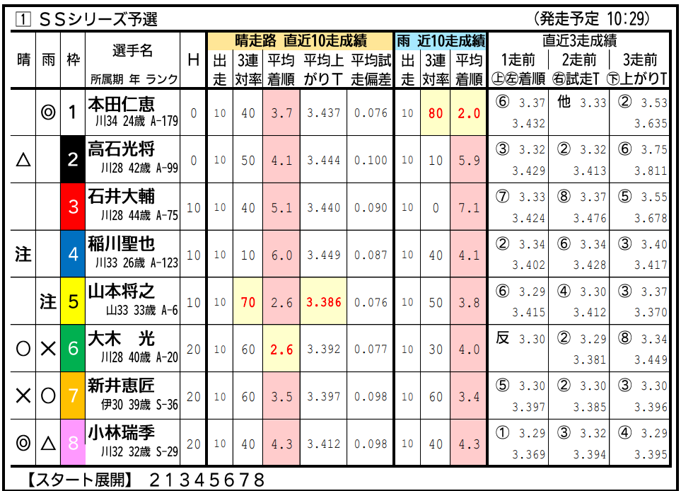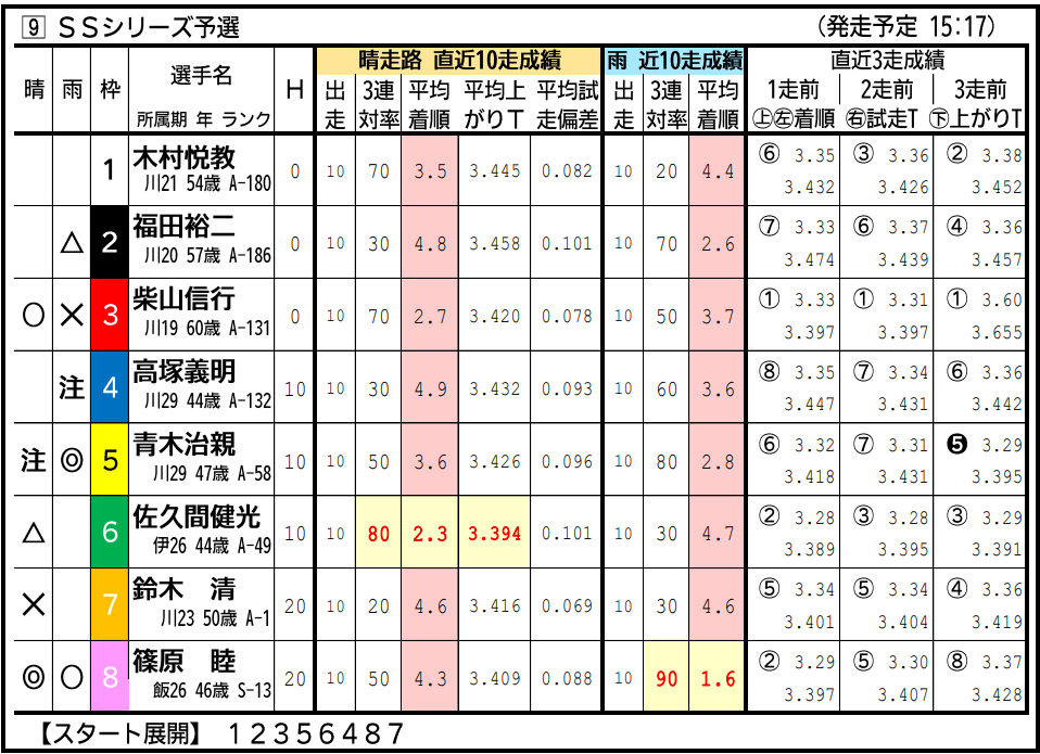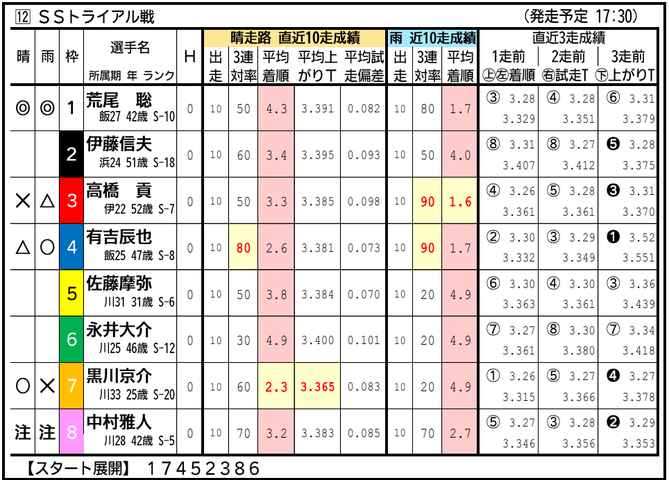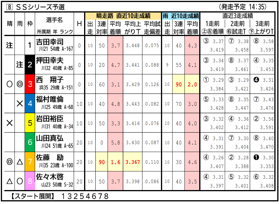 佐藤は意外な着取りだが、スピードはメンバー1。相手筆頭は期待感も込めて西。Sで1角先取りなら逃げ切りも。
