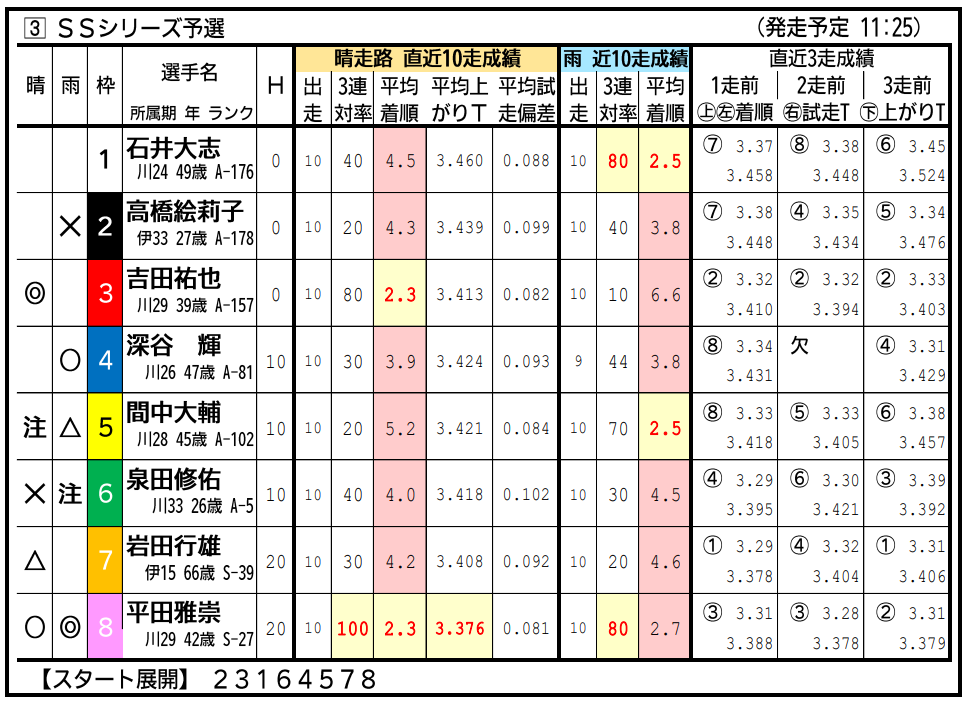 吉田がS一気の展開。相手は平田にしたが、岩田を早めに攻略できるかがポイント。泉田絡みに注意。