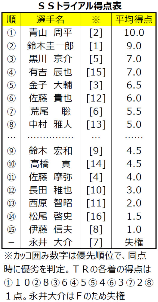 【川口オート・スーパースター王座決定戦トライアル得点表】
