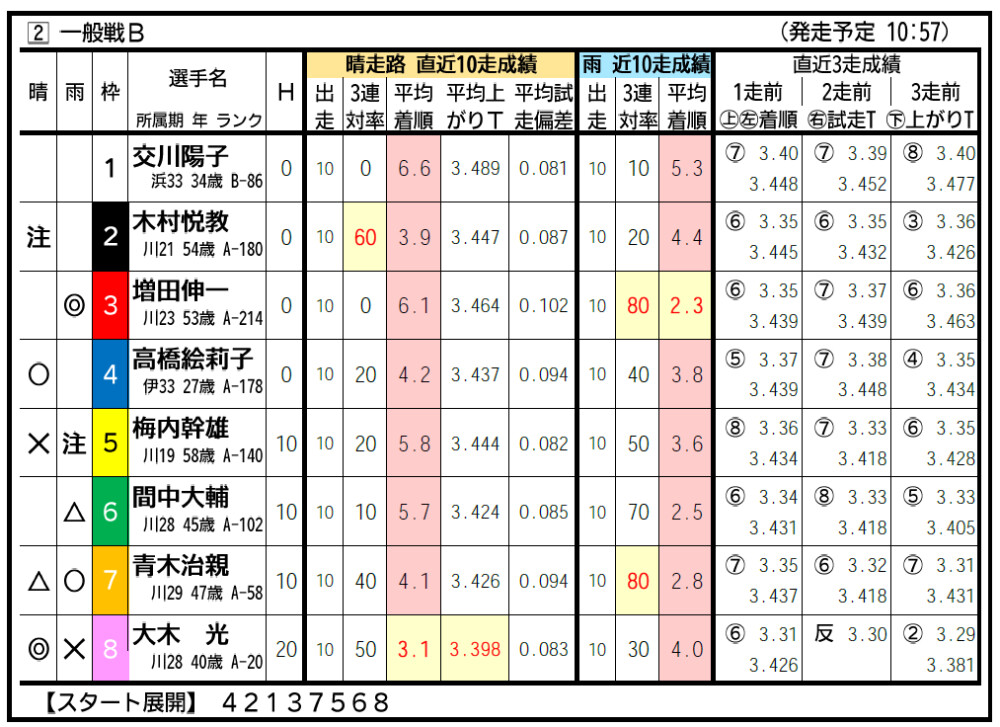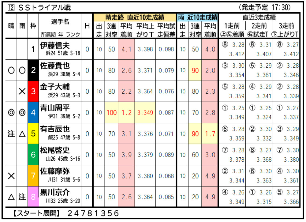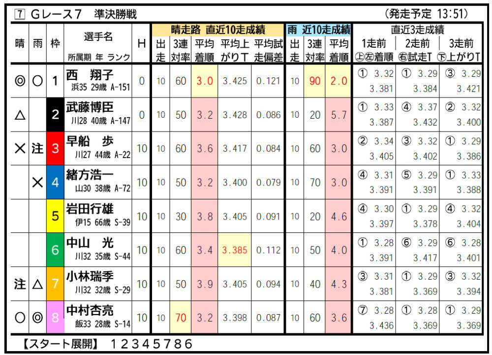 大木は2日目に内突で失権しているが、動きはそう悪くないはず。ゼロ勢は高橋先手とみて対抗に。青木は試走次第。