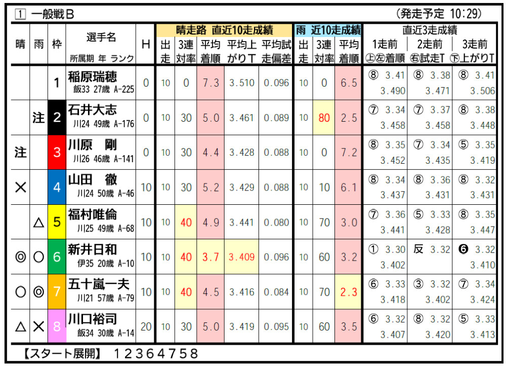 10線内枠勢はS平凡。新井が先手からゼロ勢をまくって仕留める。さばきでは五十嵐が上。川口も地力は着実に上昇中。