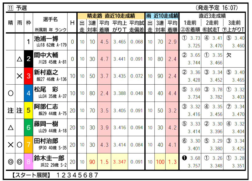 伊藤は前回山陽が散々な出来だったが、前節のヘッド交換で気配は上向き。吉田の逃げ切りが軽視できない。