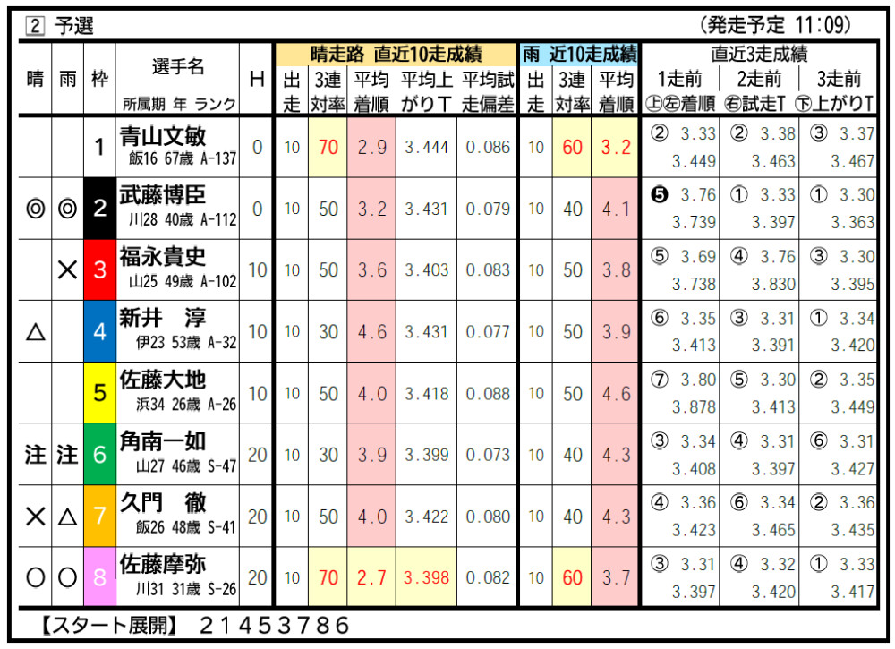 武藤はこのハンディ位置と展開なら逃げ切れて当然か。佐藤摩対抗も新走路実績は上昇途上。新井速攻注意。
