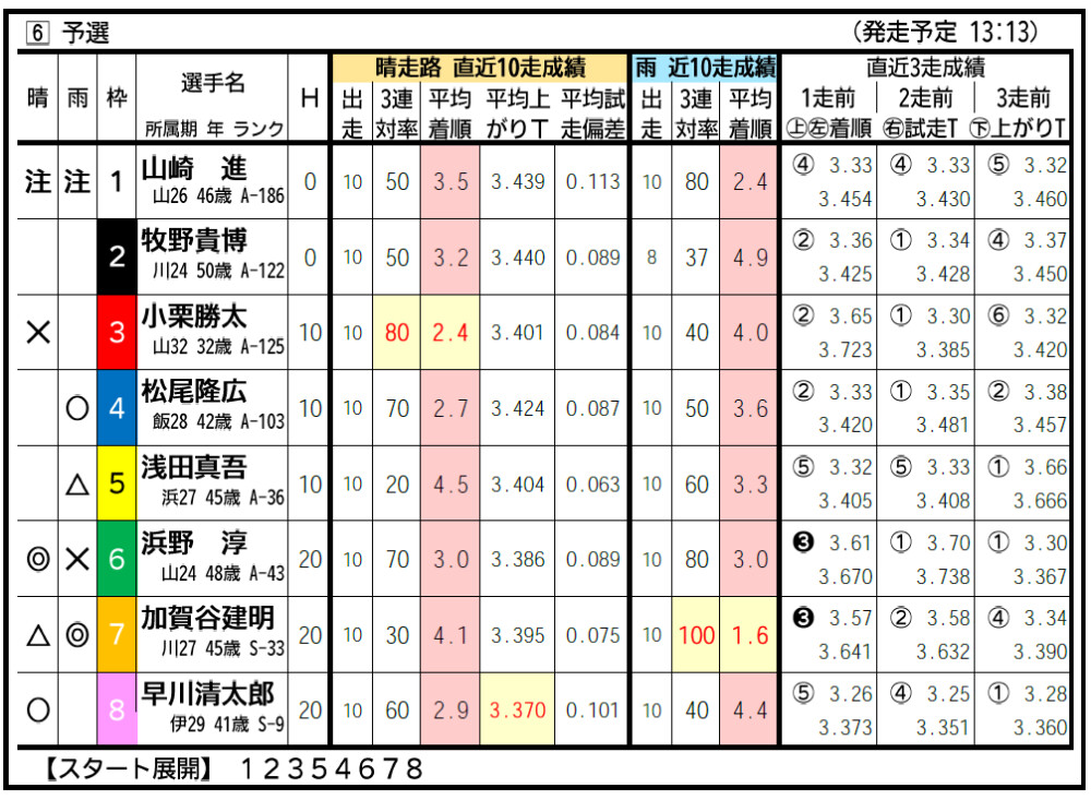 混戦必至も地元実力者の浜野を信頼したい。早川との追い勝負。加賀谷はSがどうか。小栗絡み魅力。