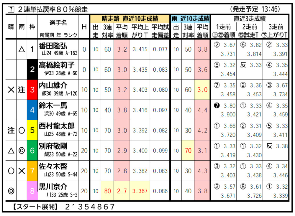 鈴木の軸は揺るがない。焦点は相手探しだが、松尾が近況はいい走り。一発候補はスピードある藤岡か。
