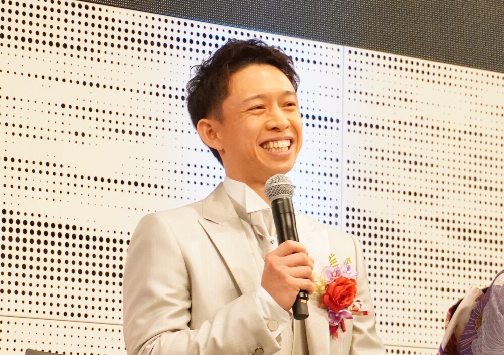 表彰式後は、レーサーOGの妻・幸美さん(旧姓・池田)や子どもたちと壇上に並んでプライベートの記念撮影。一家の夢がかなった瞬間でもあった。