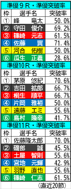 もちろん、狙うのは最も数値が高い選手で、9Rなら71.4%の佐藤翼。機力も実力も確かなので軽視は禁物です。