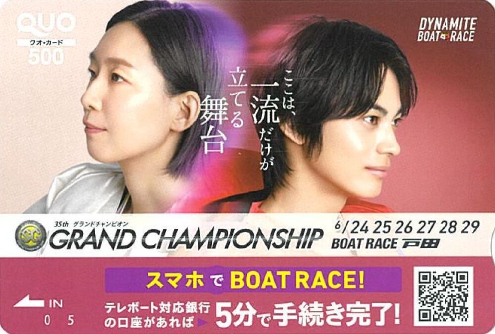 戸田ボートは、SG「第35回グランドチャンピオン」(24~29日)の開催を記念して、オリジナルクオカード(500円分)=写真=を西スポレースサイト読者15人にプレゼントする。