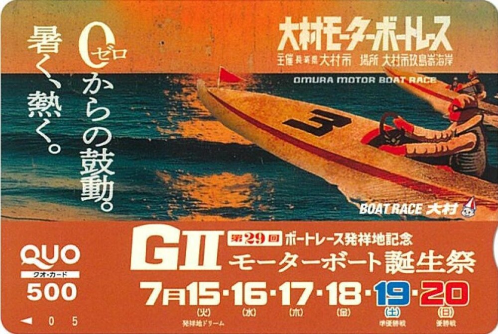 大村ボートは、GⅡ「第29回モーターボート誕生祭」(15~20日、ナイター)の開催を記念して、オリジナルクオカード(500円分)=写真=を西スポレースサイト読者10人にプレゼントする。