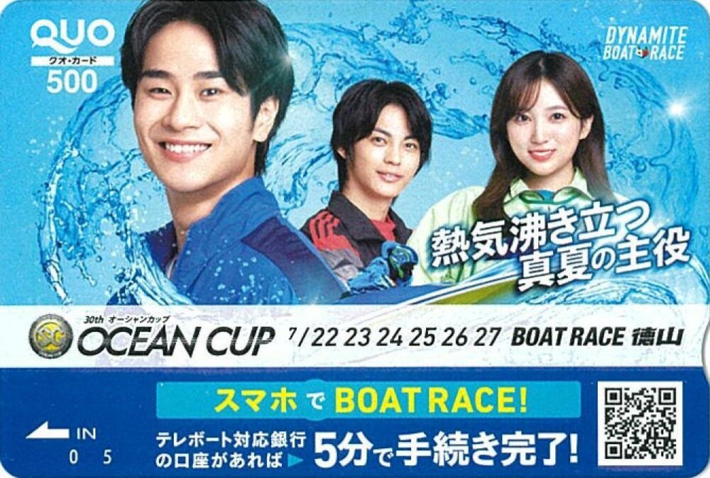 徳山ボートは、SG「第30回オーシャンカップ」(22~27日)の開催を記念して、オリジナルクオカード(500円分)=写真=を西スポレースサイト読者10人にプレゼントする。