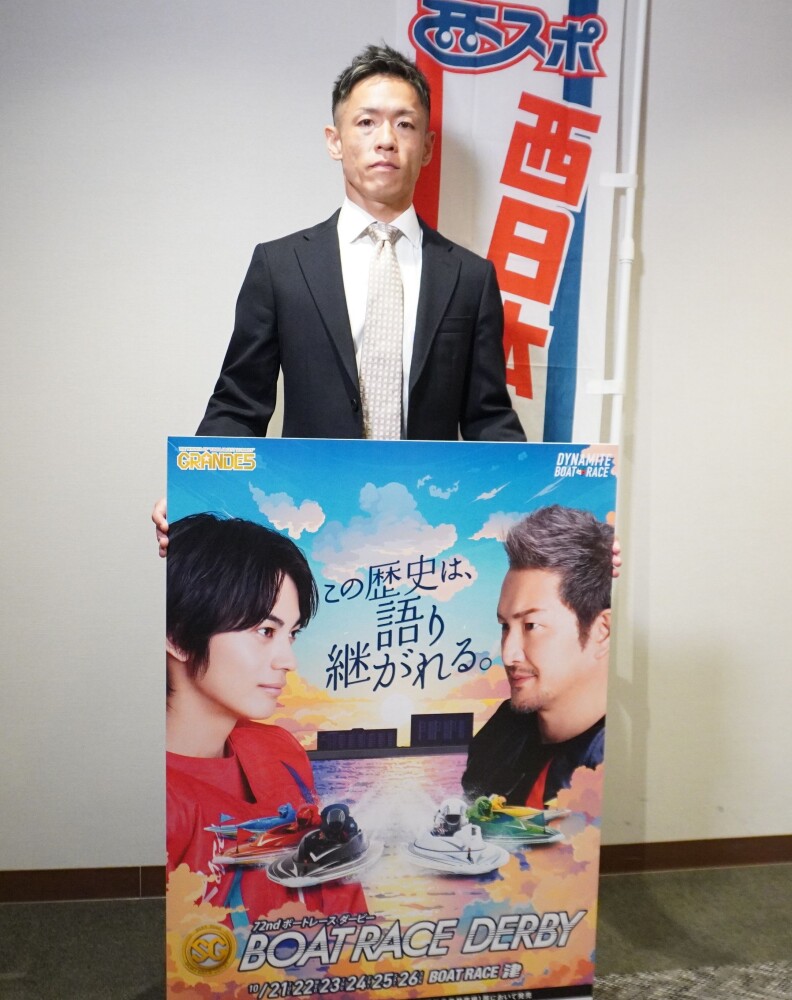 PR隊には福岡勢8人のうちの1人、塩田北斗が同行。津では2節連続優勝中で「相性も印象もすごくいい。何もかも合うし、地元以外では一番」と水面攻略に自信を見せた。3月のSGクラシック(若松)では優出2着とあと一歩だったが、「悔いはあるが、いい経験になった。ダービーは歴史もあり特別感もあるレース」と初のSG戴冠へ目を輝かせた。