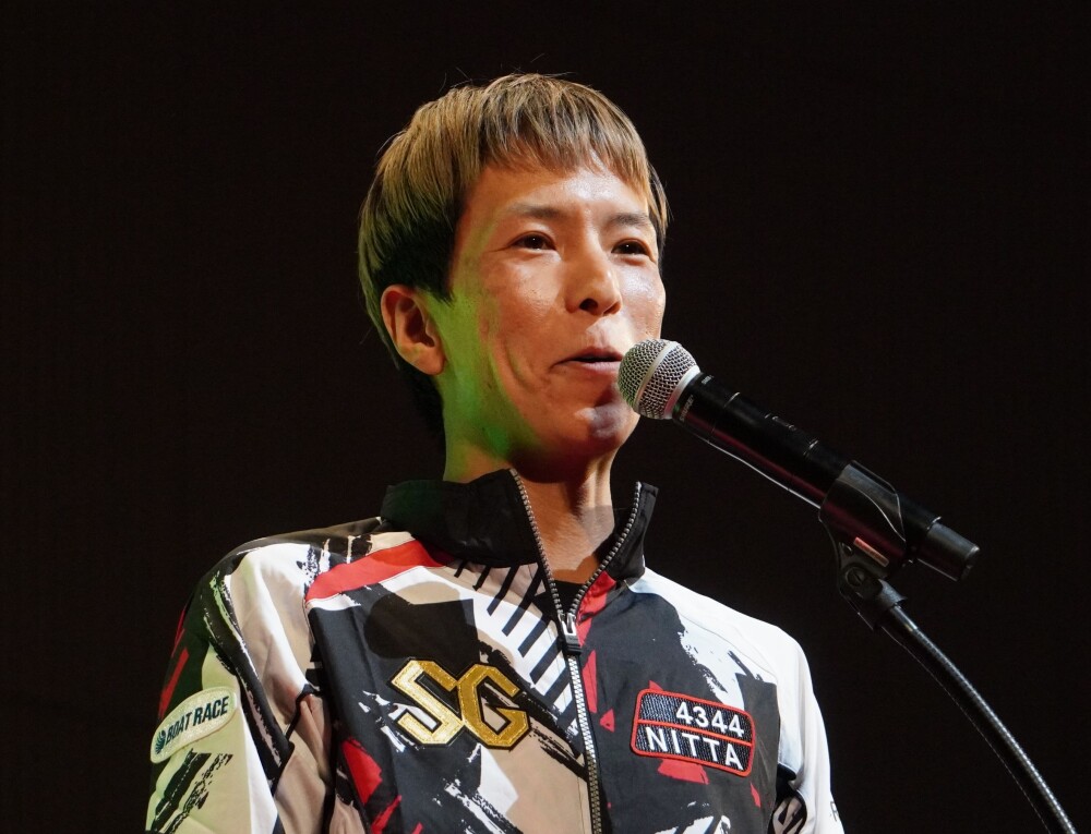 地元三重支部から唯一出場の新田雄史(40)=96期・A1=が、地元選手として当然ながらその役回りだったのだが、紹介を受けてステージ中央のマイクに立つと一言。「人前でしゃべるのは苦手なので、ボートレース界で一番、人気のある選手に代打をお願いしました。出てきてもらいます」