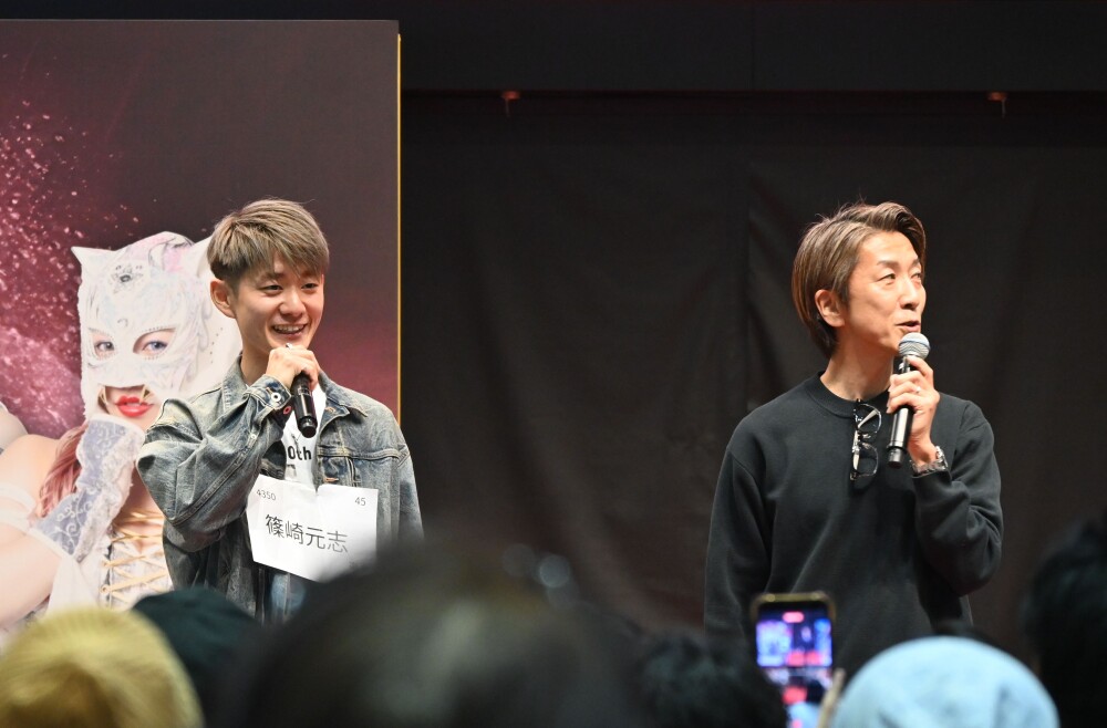 「はい~、どうも~」と芸人のようなかけ声とともに一人でステージに現れた廉は「ポンコツ会の洗礼を受けています。デビュー戦なので温かく見守ってください」と集まったファンにあいさつ。その後、ポンコツ会メンバーである父親の仁、池田浩二、林恵祐、西山が登場し、会場のボルテージは最高潮に達した。