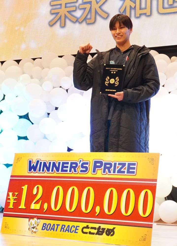 とこなめボートのGⅠ開設72周年記念「トコタンキング決定戦」(優勝賞金1200万円)は最終日の9日、12Rで優勝戦を争い、末永和也(26)=佐賀・124期・A1=が枠なりのカド4コースからまくって1着。3月のからつ周年以来3度目のGⅠVを挙げた。今年のVは10月の津ダービーも含めて7回目。通算では18回目の優勝。