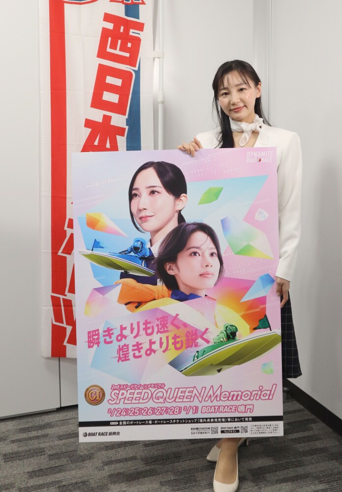 鳴門ボート(徳島県)で24日に開幕するプレミアムGⅠ「第2回スピードクイーンメモリアル」(3月1日まで、データイム開催)のPR隊(鳴門市企業局ボートレース企画課の池脇康子課長ら)が16日、福岡市・天神の西日本スポーツを訪れ大会をアピールした。売り上げ目標額は90億円。