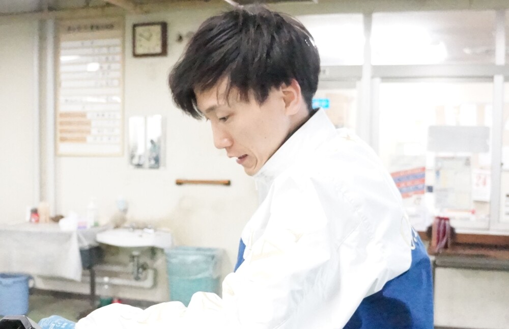 最近、伸び仕様に調整をする選手が増えてきた。今節のからつにも伸び仕様で戦う長崎支部の新星・岡暢祐が参戦中。初戦の2Rをチルト2度で6コース進入から2着に入り、上々の滑り出しを見せた。「舟足がいいというよりかは展開が良かったですね」と謙遜しながらレースを振り返った。