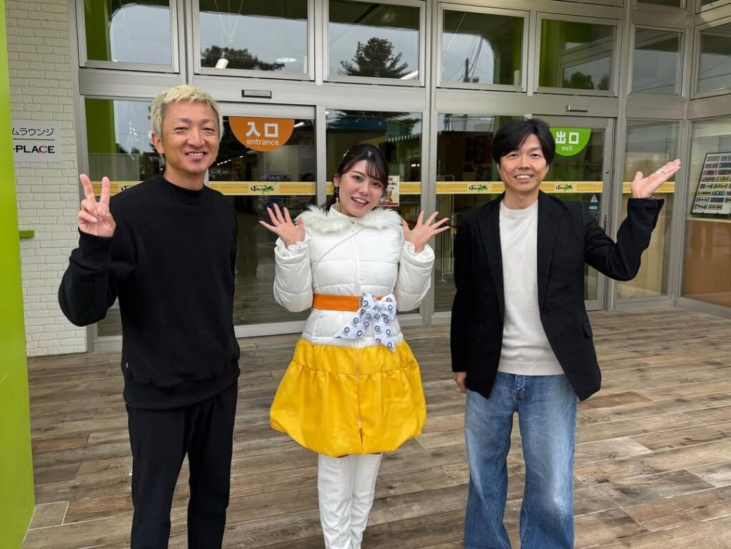オートレーサー有吉辰也選手、荒尾聡選手、〝飯塚オート勝利の女神〟の3人が「ばんえい十勝帯広競馬場」へ