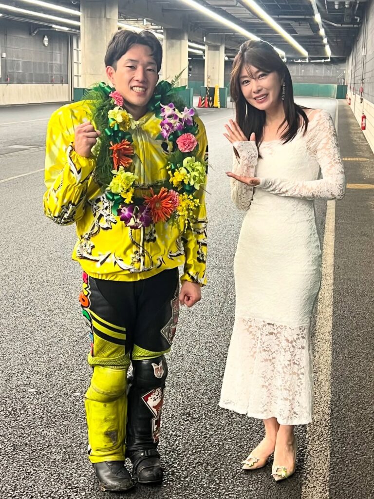 7月21日に「川口オートレース場」で開催された「GⅠ第49回日刊スポーツキューポラ杯」優勝戦の表彰式に、真っ白なレースのドレスで登場。