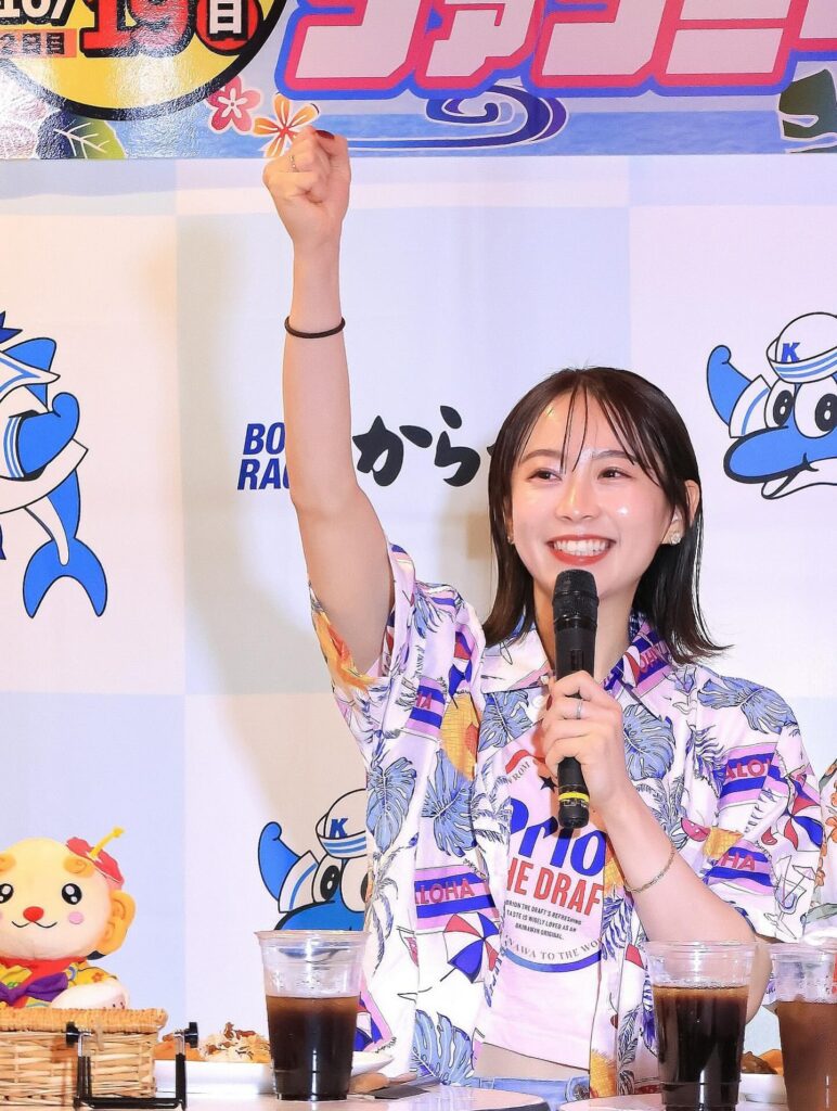 女子ボートレーサーの野田なづきが沖縄での〝ファンミーティング〟に参加