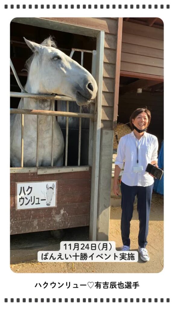 ばん馬のハクウンリュー号が11/24(月・祝)飯塚オートに来場 飯塚オートの公式インスタグラムが、11月24日「庄内のやきにく王国presentsGI開設69周年記念レース」最... -