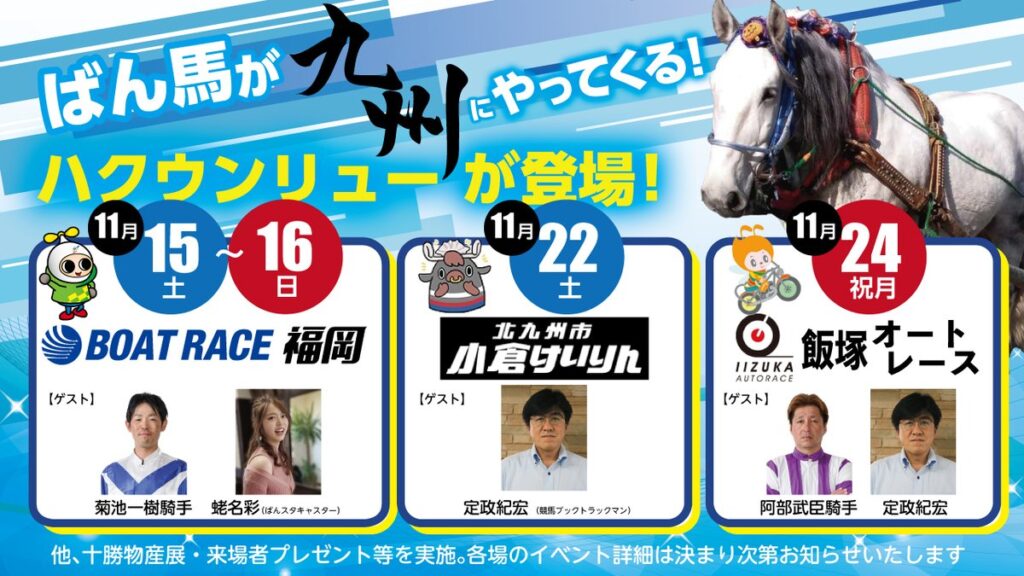 「ハクウンリュー出発です! 九州のみなさま、待っていてください」ボートレース福岡・小倉競輪・飯塚オートで〝ばんえい十勝〟コラボイベント