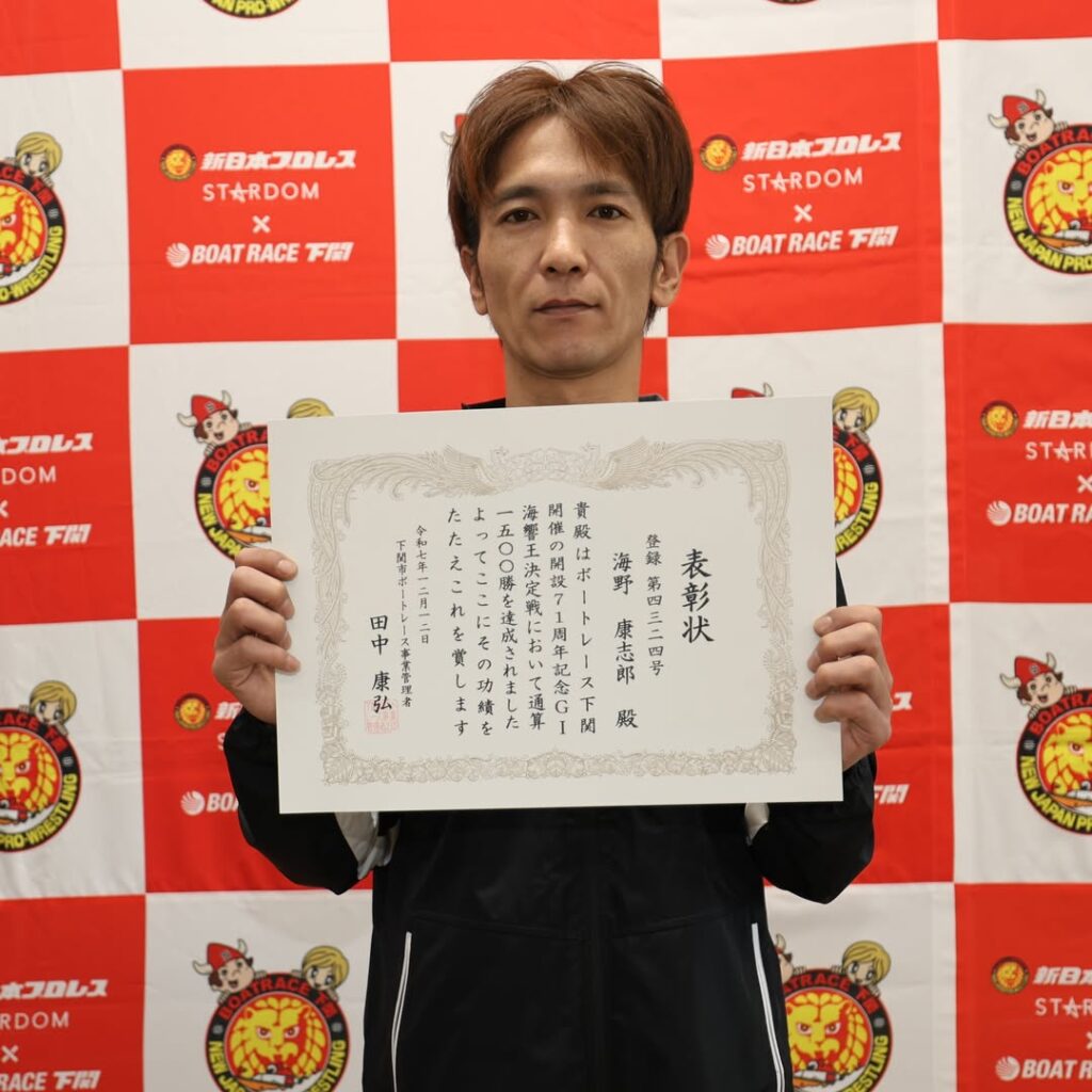 「次は2000勝!目指して無事故で頑張ってください!」12月11日ボートレース下関で地元の海野康志郎が通算1500勝を達成