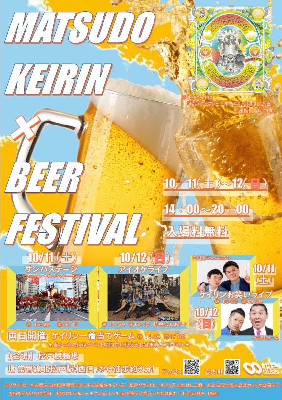 松戸競輪「ビールフェスティバル」で「アイオケ」が2ステージ アイドル × オーケストラ 〈アイオケ〉の公式Xが、10月12日松戸競輪場で開催の「ビールフェスティバル... -
