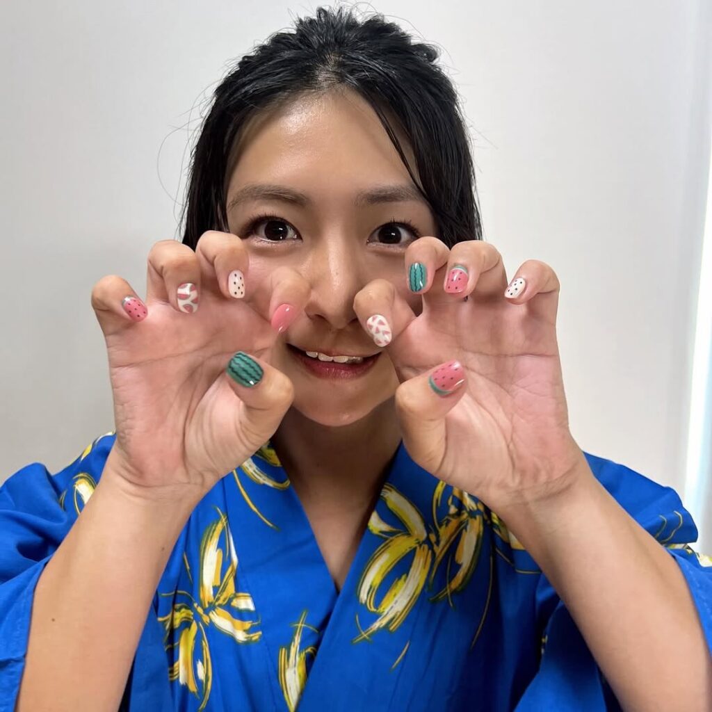 ファンも「浴衣もネイルもかわいい」「スイカネイルがメチャ可愛い」と大絶賛だった。