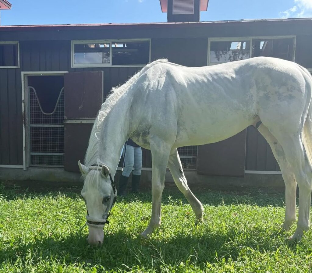 「ハヤヤッコに会いにひとりノーザンホースパークへ。ヤッコさんが元気でいてくれて私は本当に幸せです!!!」と、〝推し馬〟と一緒に記念撮影。