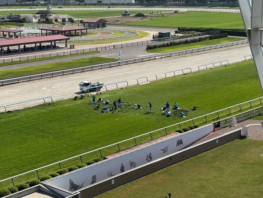 9月7日で競馬開催を終えた「札幌競馬場」が、「芝コースのメンテナンス作業」の様子を作業工程ごとにSNSで公開した。