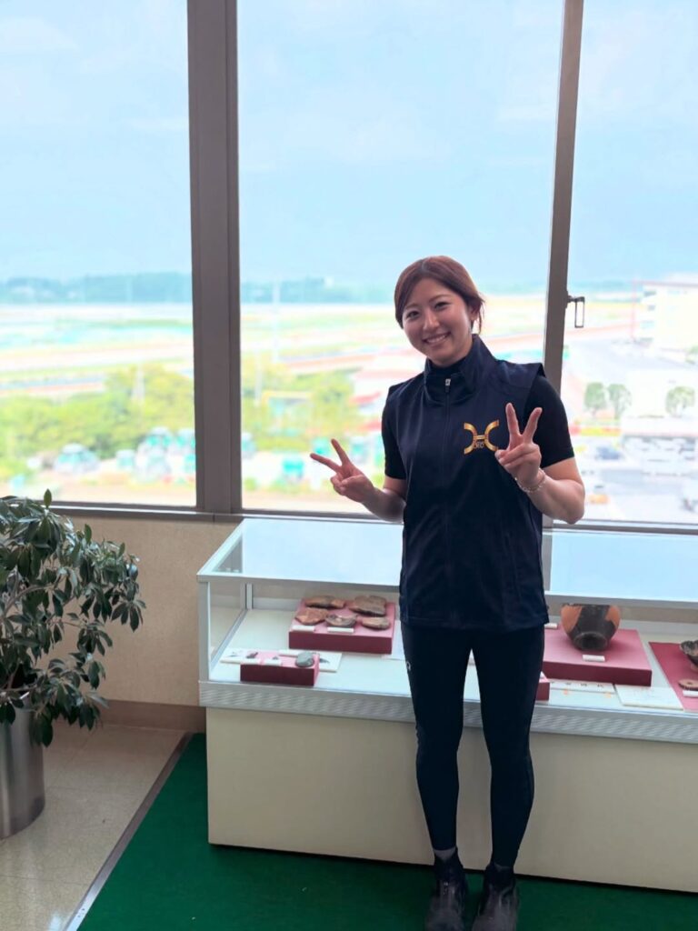 この日はセンターが、普段見ることのできない競走馬の調教に関心のあるファンのために、毎月1回実施しているターフプラザの早朝開放日。ターフプラザをサプライズ訪問した今村は「調教終わりに少しだけ伺いましたが、競馬を愛するたくさんの方々に朝早くからお越しいただいているな、と感じました!美浦トレーニングセンターならではのイベントとのことで、毎月第二水曜日に実施されるみたいです。みなさん是非お越し下さい!」と、調教馬場をバックに笑顔のスナップをアップ。