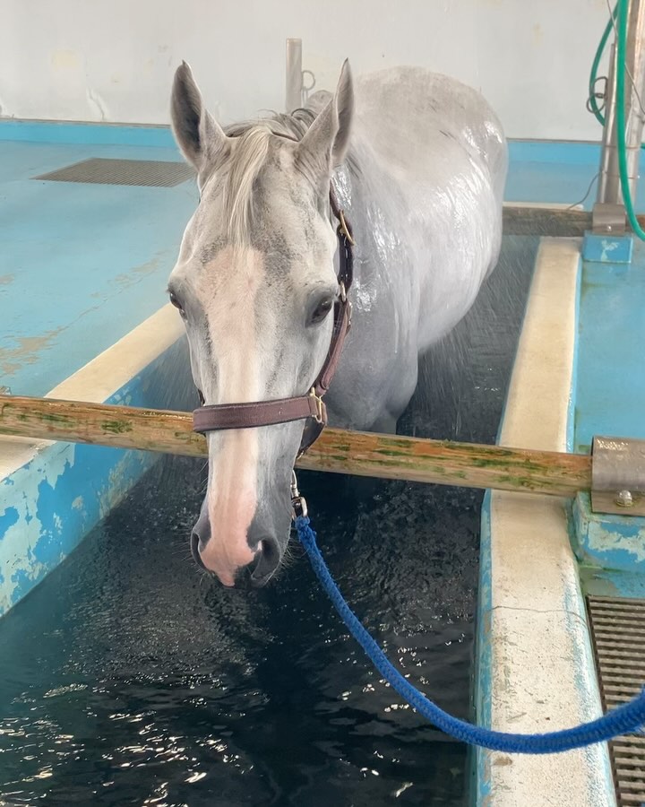JRA日本中央競馬会の公式インスタグラムが、競走馬リハビリテーションセンターにある〝馬の温泉〟を動画と写真で紹介した。
