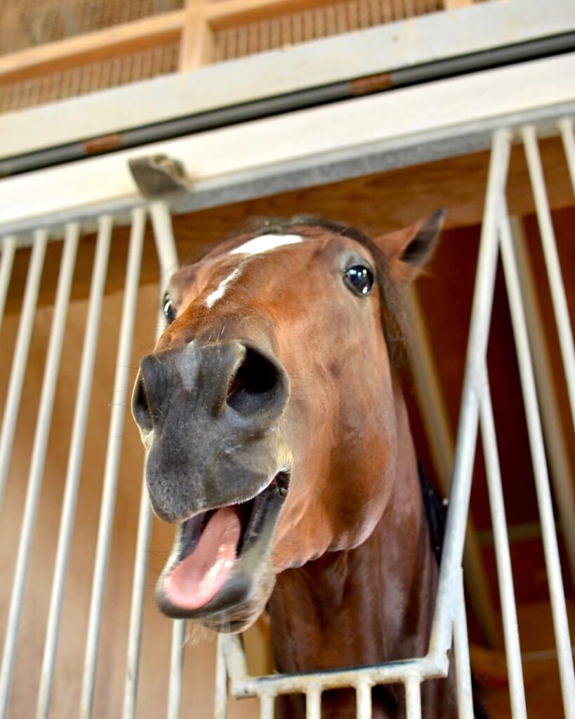 夏競馬で『函館競馬』に参戦中のJRA女性ジョッキーの古川奈穂が、騎乗した〝軍師の変顔〟写真を投稿した。(馬名のストラテージュはフランス語で〝軍師〟の意)