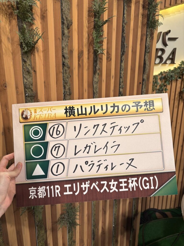 この投稿に「るーりーさん惜しい!」「BSスーパーKEIBAお疲れ様でした〜。リンクスティップ頑張ったんやけどね〜。レガレイラは凄かった」「予想ほぼ完璧じゃん」などのコメントが寄せられた。