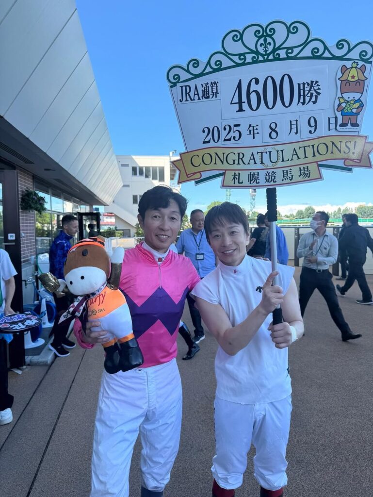 その瞬間(とき)は8月9日の札幌競馬場8Rのゴール前。武豊(56)=栗東・フリー=騎手は「3歳上1勝クラス」に出馬したナリタヒカリ(1番人気)に騎乗。ゴール前で見事に差し切って勝利し、史上初のJRA通算4600勝を達成した。87年3月1日の初騎乗から38年5カ月9日目、2万5216戦目での記録。