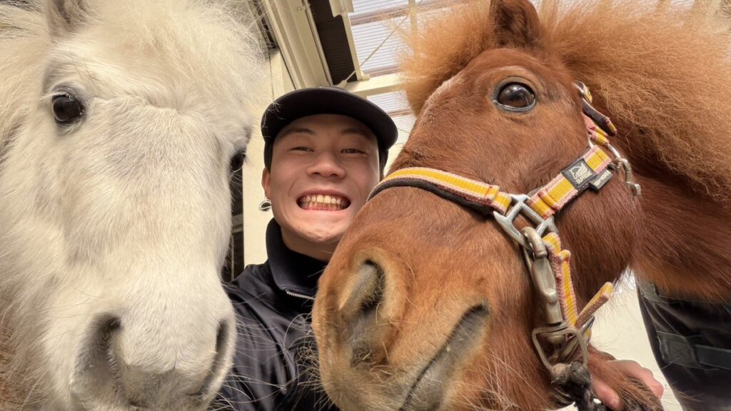 JRA福島競馬場公式Xを更新。遠藤汰月騎手(えんどう・たつき、19歳)=美浦・伊藤厩舎=が来場し、ミニチュアホースたちとふれあう様子を公開した。