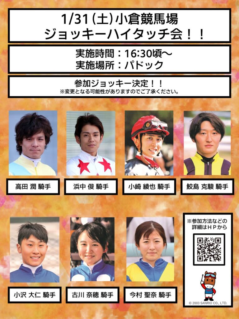 JRA小倉競馬の公式Xが、1月31日に行う〝ジョッキーハイタッチ会参加騎手〟を発表した。