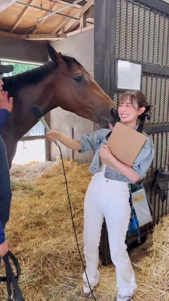 「こんなに舐めてくれるグランプリ女王。レガレイラを担当されている方にもびっくりされるくらい!取材中ずーーーっとこんな感じでした。スタッフさんにも笑われました(笑)トレセンでは見られないこんなに可愛い姿があるんです‼︎取材には慣れている流石の貫禄!貴重な一面がまた見られて嬉しかった♡」と、そのときの様子を動画と一緒にアップした。