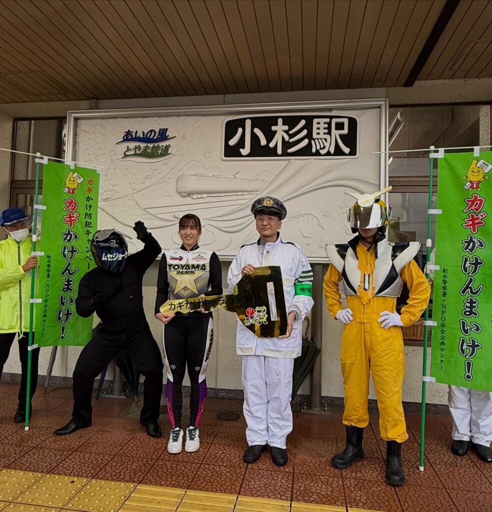 富山競輪の公式インスタグラムが、ガールズケイリン選手で「カギかけ防犯大使」でもある下条未悠(げじょう・みゆ・24歳)=富山・118期・L1=の啓発活動を写真付きで公開した。