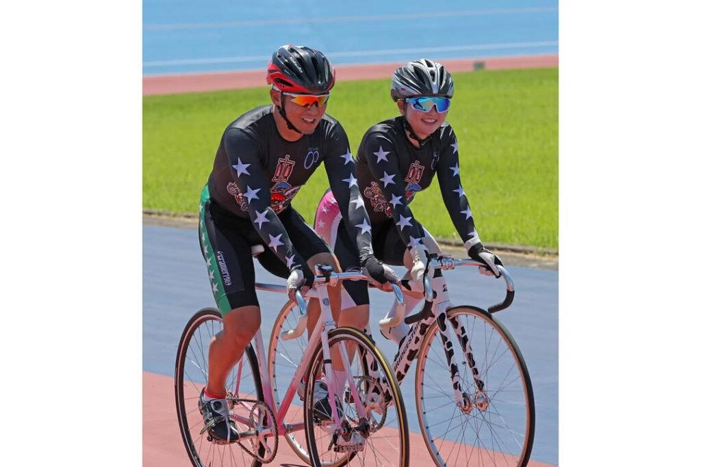 ガールズケイリン選手の藤原春陽が父の藤原義浩と一緒にバンク周回