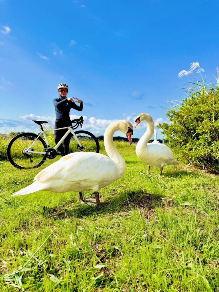 道端で白鳥と出会えるのは茨城が特殊なのかな?」と、輪行先で出会った白鳥との画像を公開した。