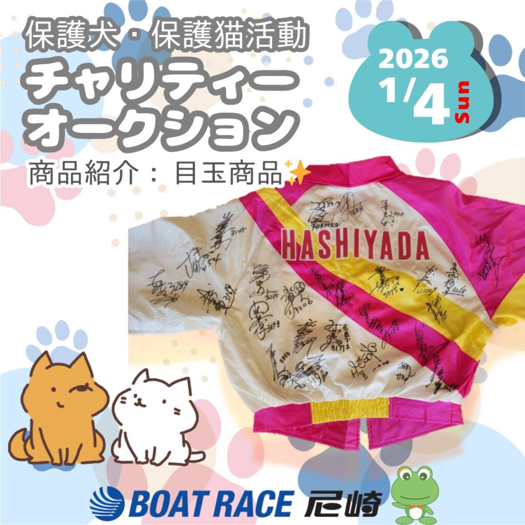 「2026年1月4日(日)に元ボートレーサの池田明美さんと豪華現役選手による保護犬・保護猫活動トークショーとチャリティーオークションを開催します」と、案内した。