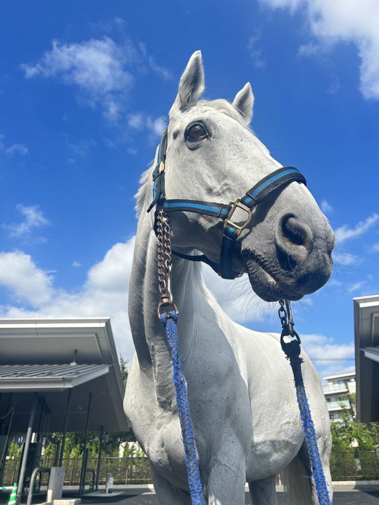 18歳芦毛のサラブレッドです。着隊14年目を迎え、騎馬隊の中で一番の大ベテランになりました。後輩にも負けない元気と愛嬌で、これからも頑張ります! pic.twitter.com/Ku6y6GKZfT